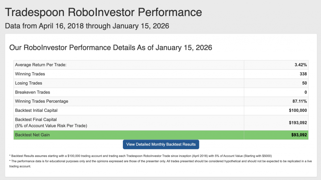 *Please note: RoboStreet is part of your free subscription service. It is not included in any paid Tradespoon subscription service. Vlad Karpel only trades his own personal money for paid subscription services. If you are a paid subscriber, please review your Premium Member Picks, ActiveTrader, MonthlyTrader, or RoboInvestor recommendations. If you are interested in receiving Vlad’s personal picks, please click here.