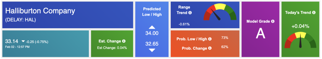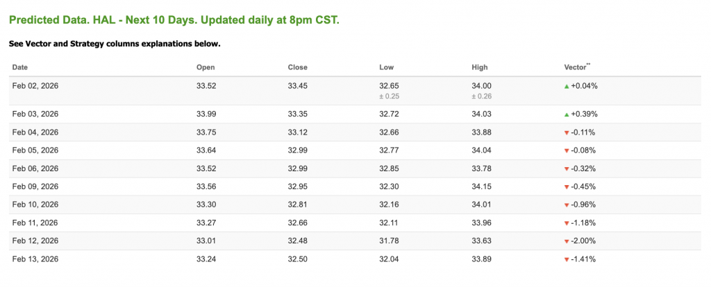 Our featured symbol for Tuesday is HAL. Haliburton (HAL) is showing a steady vector in our Stock Forecast Toolbox’s 10-day forecast.