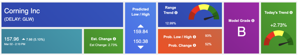 Our featured symbol for Tuesday is GLW. Corning Inc. (GLW) is showing a steady vector in our Stock Forecast Toolbox’s 10-day forecast.