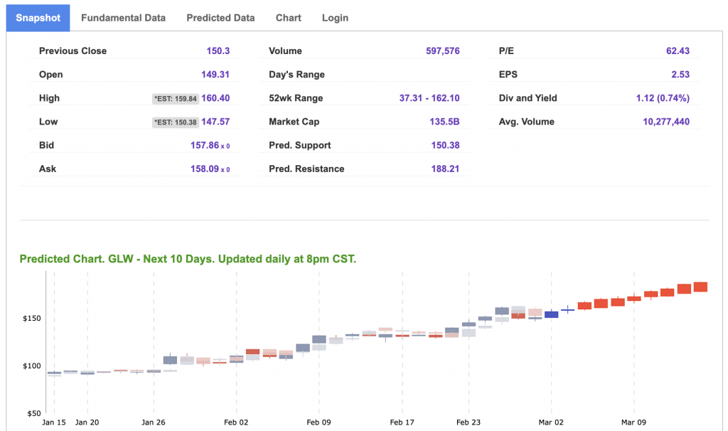 *Please note: At the time of publication, Vlad Karpel does have a position in the featured symbol, GLW. Our featured symbol is part of your free subscription service. It is not included in any paid Tradespoon subscription service. Vlad Karpel only trades his money in paid subscription services. If you are a paid subscriber, please review your Premium Member Picks, ActiveTrader, or MonthlyTrader recommendations. If you are interested in receiving Vlad’s picks, please click here.