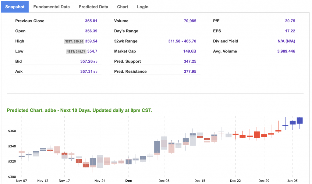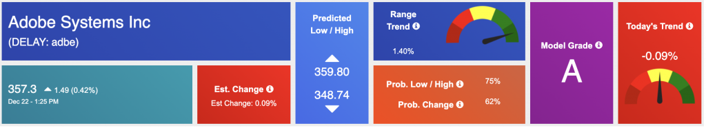 Our featured symbol for Tuesday is ADBE. Adobe Systems Inc. (ADBE) is showing a steady vector in our Stock Forecast Toolbox’s 10-day forecast.