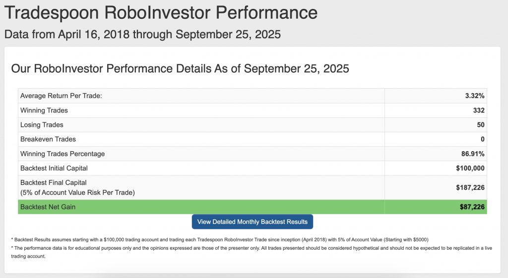 *Please note: RoboStreet is part of your free subscription service. It is not included in any paid Tradespoon subscription service. Vlad Karpel only trades his own personal money for paid subscription services. If you are a paid subscriber, please review your Premium Member Picks, ActiveTrader, MonthlyTrader, or RoboInvestor recommendations. If you are interested in receiving Vlad’s personal picks, please click here.