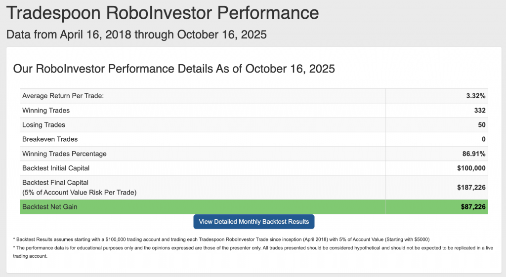 *Please note: RoboStreet is part of your free subscription service. It is not included in any paid Tradespoon subscription service. Vlad Karpel only trades his own personal money for paid subscription services. If you are a paid subscriber, please review your Premium Member Picks, ActiveTrader, MonthlyTrader, or RoboInvestor recommendations. If you are interested in receiving Vlad’s personal picks, please click here.