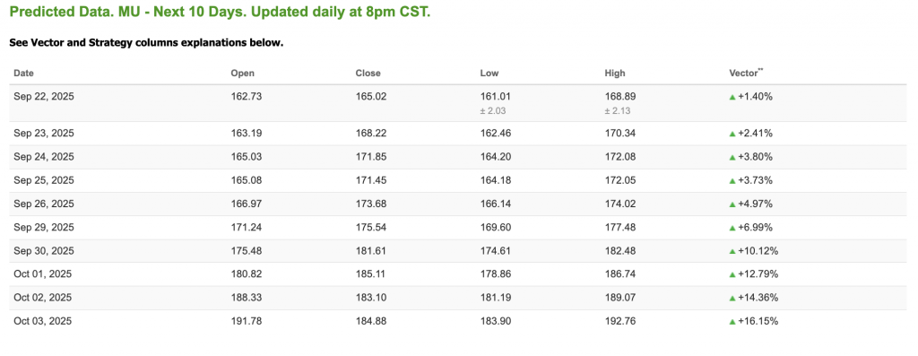 10-Day Prediction data is uploaded after the market close at 6 p.m., CST. Today’s data is based on market signals from the previous trading session.